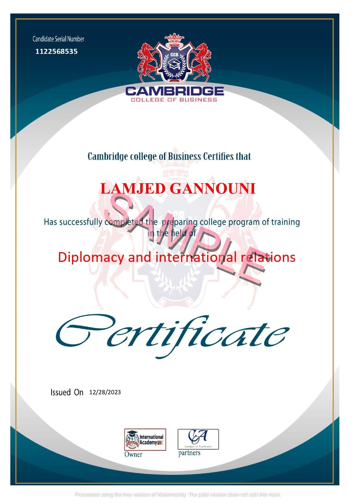 Cambridge College of Business Mini-MBA (Entrepreneurship)